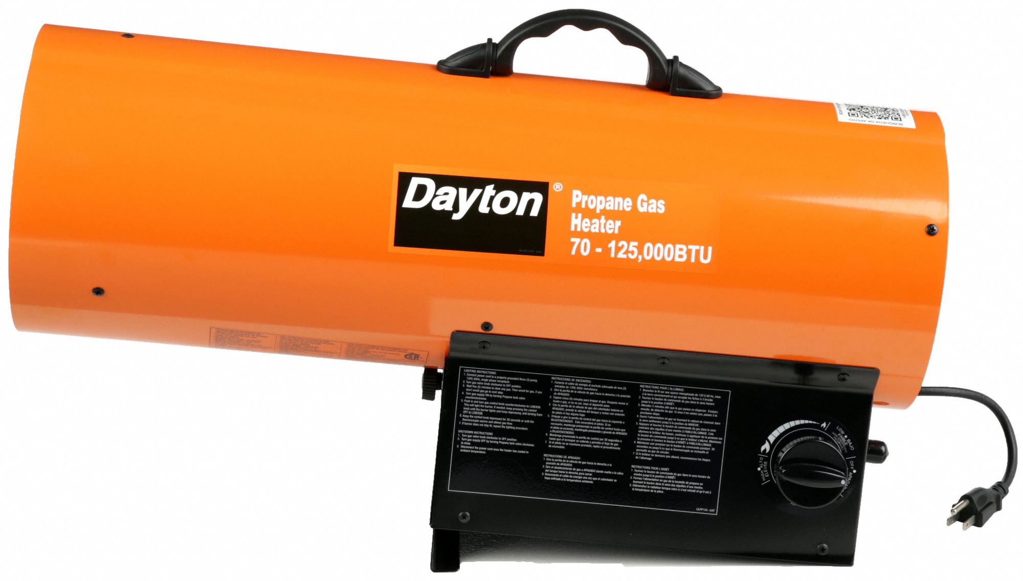 Dayton Portable Gas Torpedo Heater 125 000 Btuh Heating Capacity Output 3 100 Sq Ft Heating Area 3ve57 3ve57 Grainger